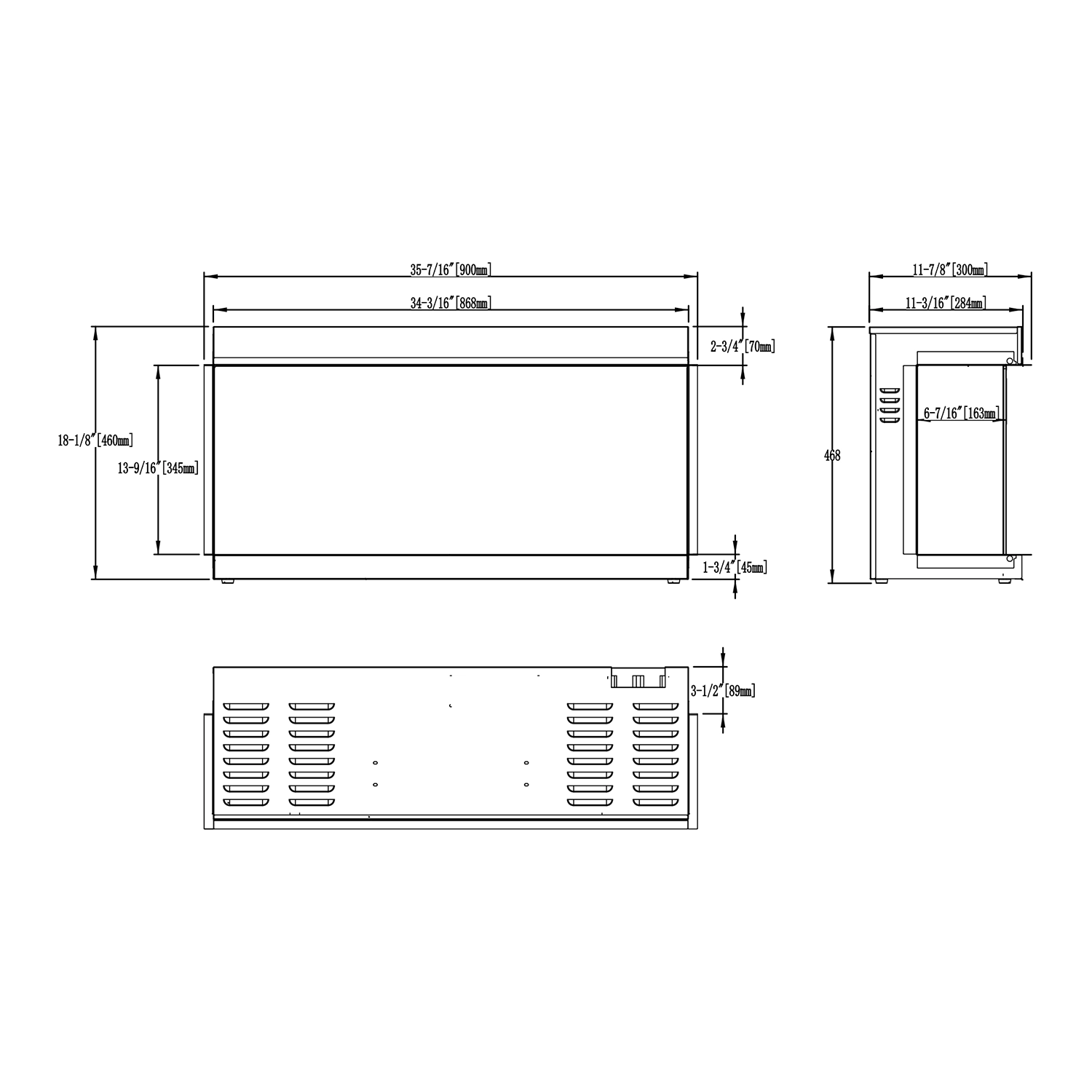 - Diseño empotrado de 3 caras para una vista completa de las llamas