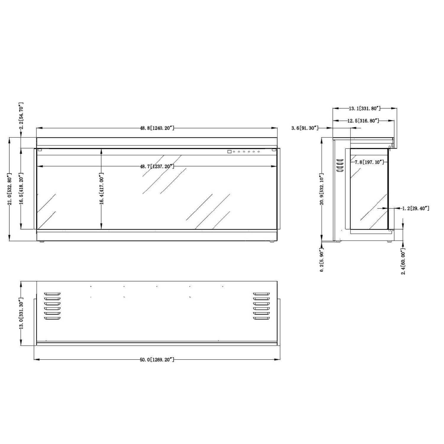 La chimenea eléctrica Superb 50 empotrada de 3 caras ofrece una visión panorámica de las llamas desde cualquier ángulo. Con unas dimensiones de 124 cm de largo, 53,2 cm de alto y 33,1 cm de profundidad, se integra perfectamente en paredes o muebles a medida. Su diseño moderno en color negro y sus múltiples opciones de iluminación LED la convierten en una solución decorativa y funcional. Incluye control remoto y panel de control para ajustar fácilmente la intensidad de las llamas y el calor.