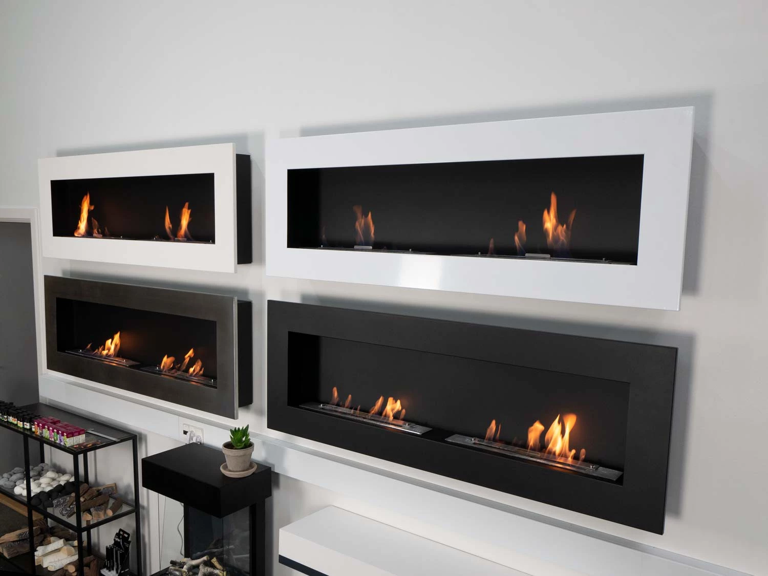 Explora nuestra gama completa de chimeneas de bioetanol empotrables a una cara, ideales para integrar bajo el televisor.