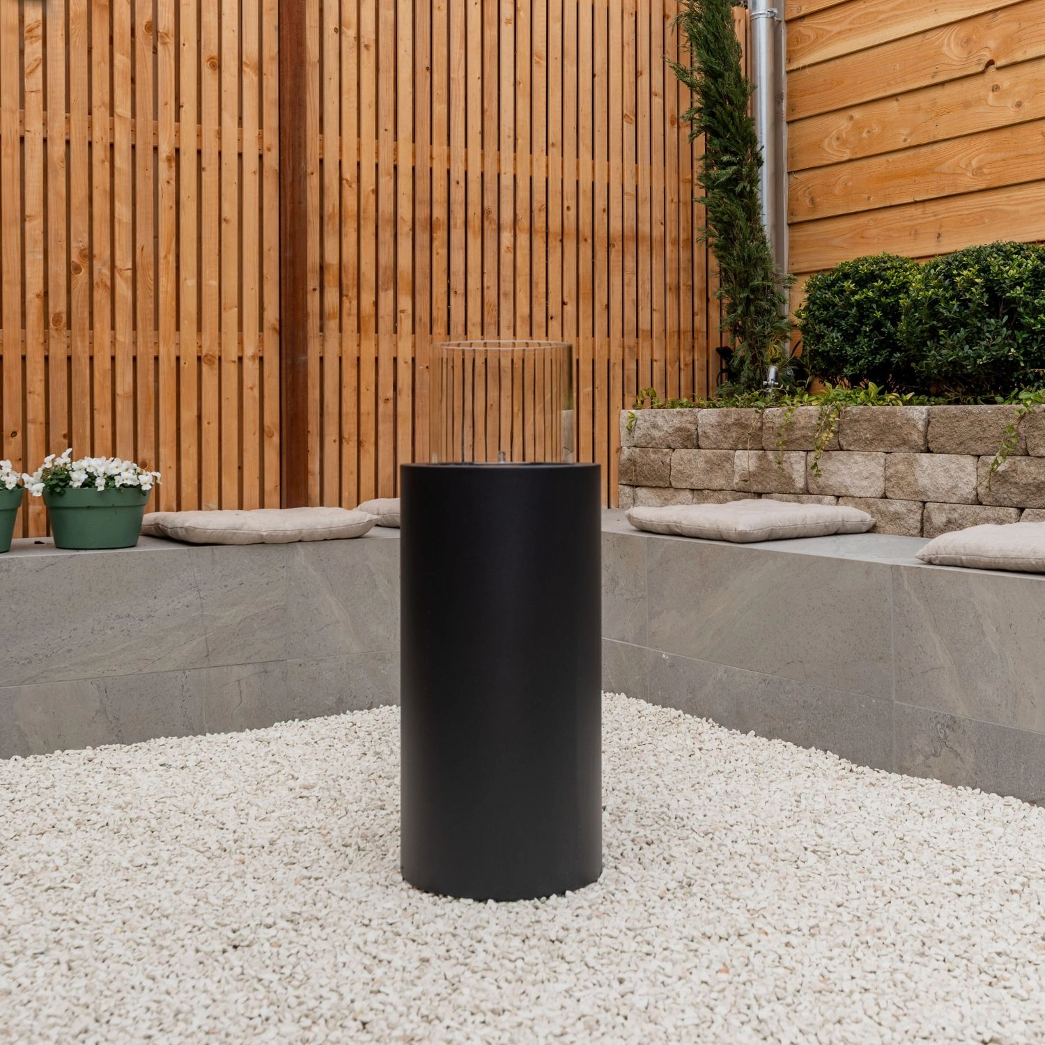 Gracias a su diseño negro y a su formato 2 en 1, puedes utilizarla como chimenea de suelo o como chimenea de sobremesa. Solo tienes que levantar el quemador y el cristal de seguridad de la base para convertirla en una versión portátil, perfecta para colocarla donde quieras crear un ambiente acogedor.