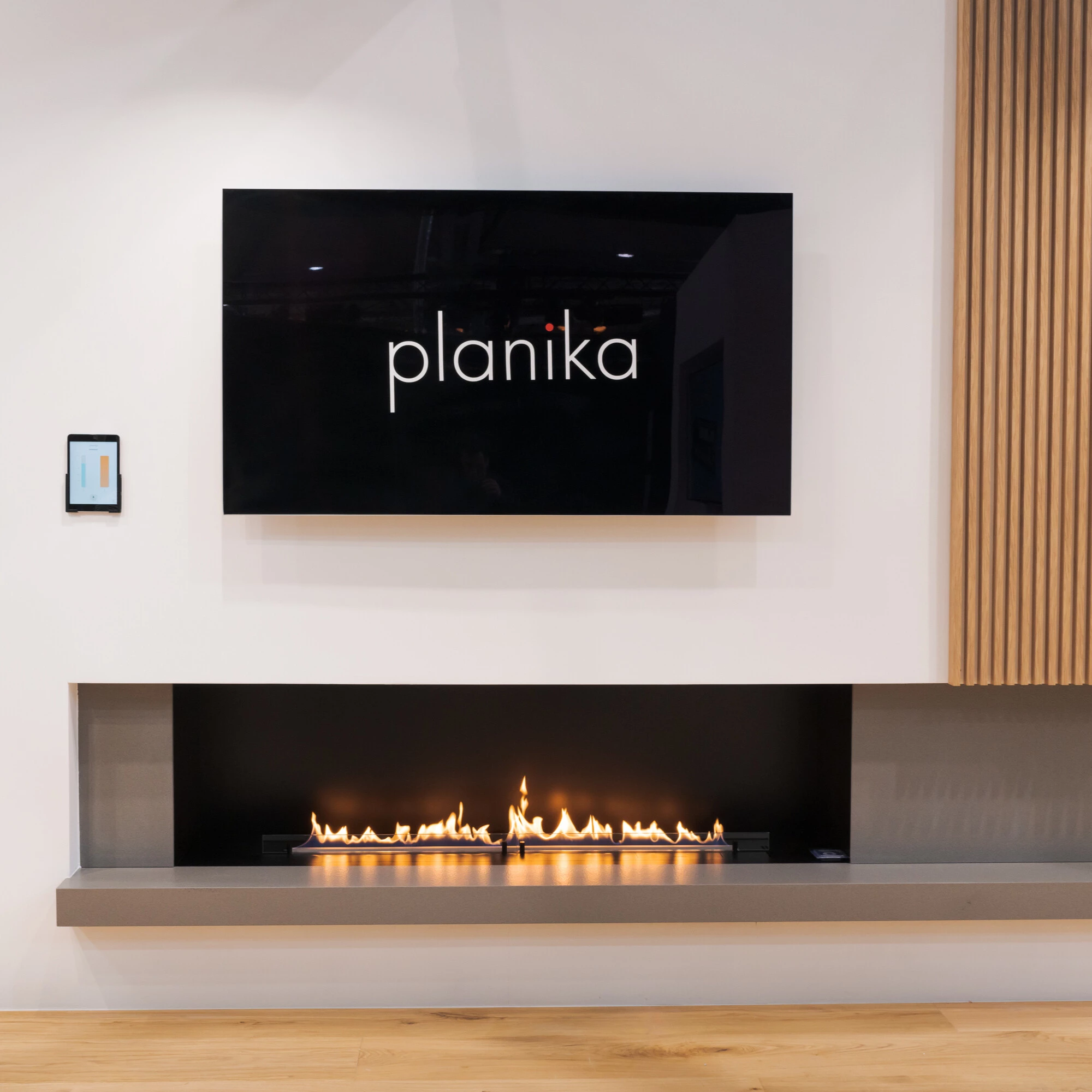 Las posibilidades de diseños son muchas. Puedes optar por un mueble con acabado tipo madera, utilizando materiales ignífugos, donde integrar un quemador de bioetanol. O bien crear una estructura de pladur resistente el fuego a medida, donde combinar la chimenea con el televisor, creando una pared multimedia. Para este tipo de aplicaciones, nuestros quemadores automáticos de Planika son la opción más elegida, asegurando un acabado elegante y de alto estándar. Esta solución aporta continuidad visual y un aire contemporáneo sin renunciar a la seguridad.