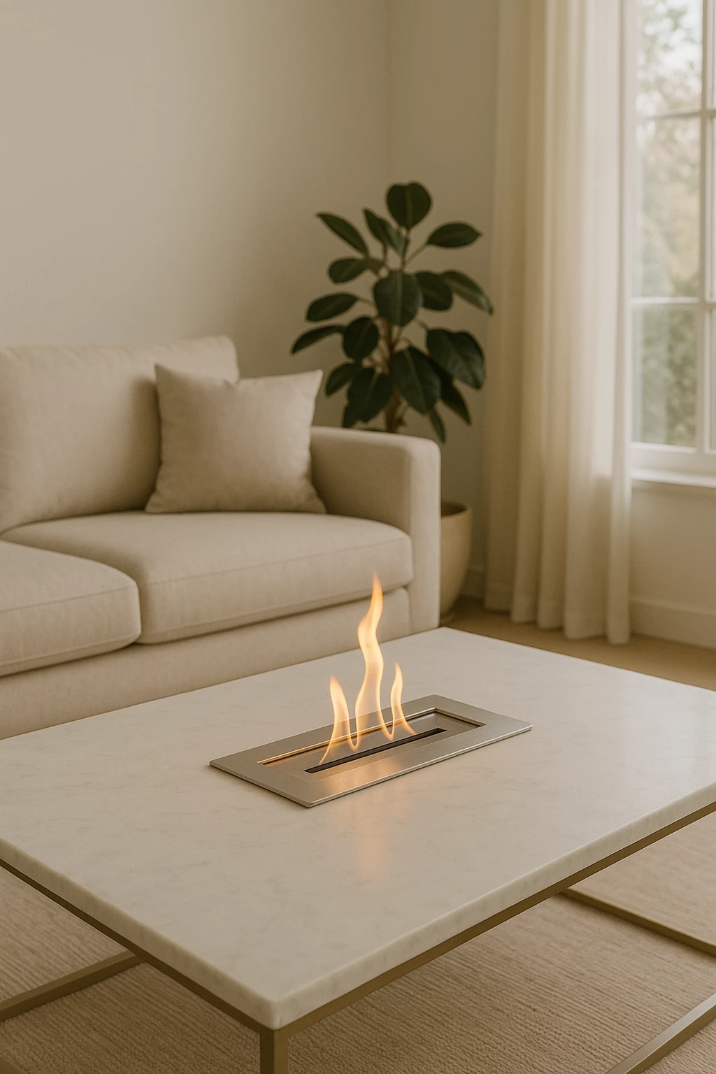 Las mesas de centro con chimenea de bioetanol son una opción original y funcional para crear un ambiente cálido y elegante en salones y zonas exteriores. Al integrar un quemador en el centro de la mesa, se consigue un punto focal decorativo que invita a reunirse alrededor del fuego, ya sea para una charla tranquila, una cena informal o una velada con amigos.