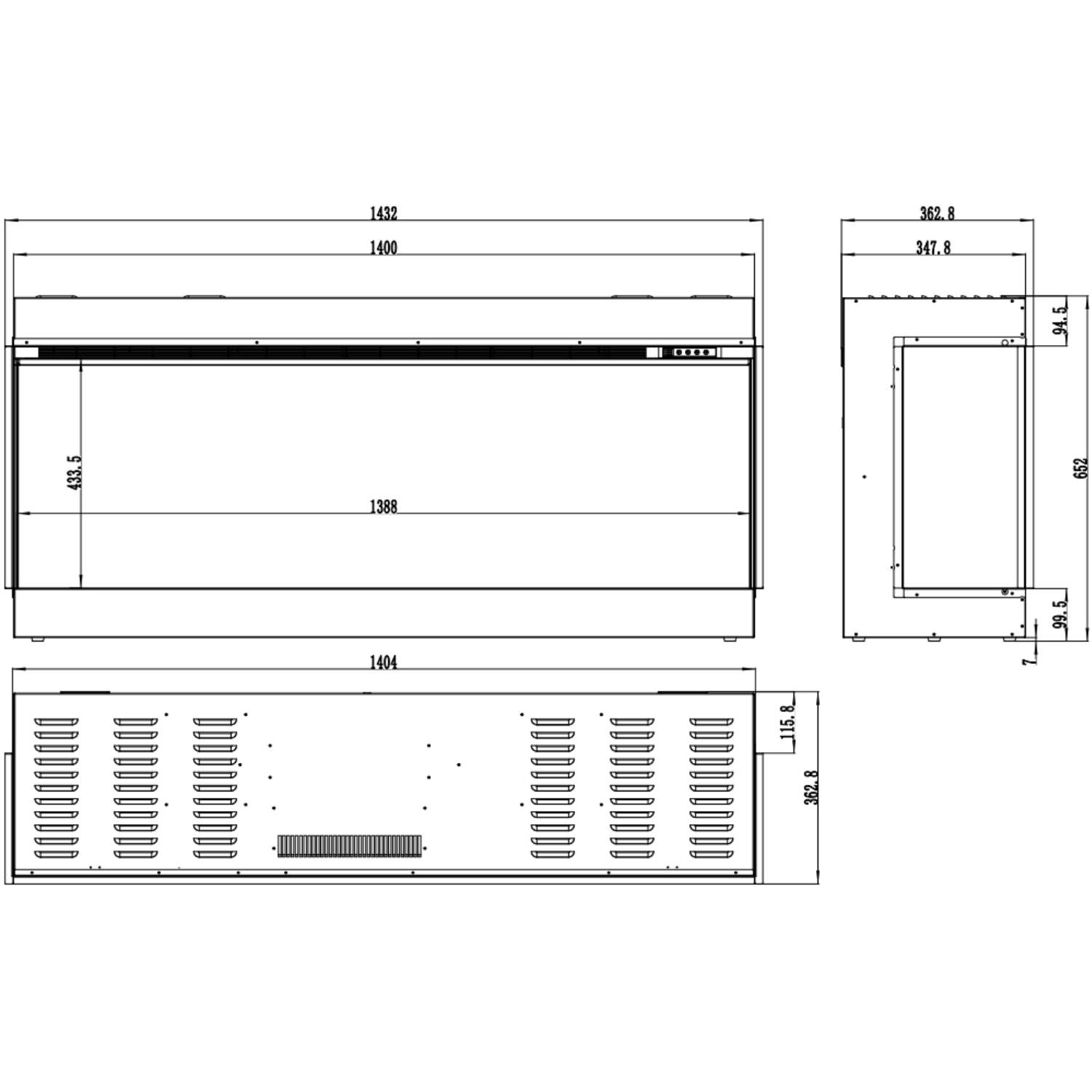 La Superb 3D 140 es una chimenea eléctrica empotrada de tres caras que transforma cualquier estancia en un espacio cálido y elegante. Con una longitud de 143,2 cm, esta chimenea ofrece un efecto de llama envolvente visible desde el frente y ambos laterales, ideal para instalaciones en pared o muebles personalizados.